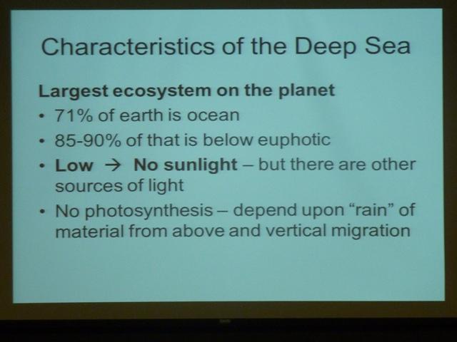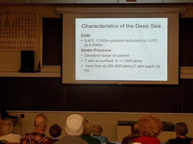 The deep sea is the largest ecosystem on the planet, yet we know little about it. This presentation will explore the adaptations of animals that have allowed them to thrive in the environment with no sunlight at temperatures of 1 to 2 degrees Centigrade.