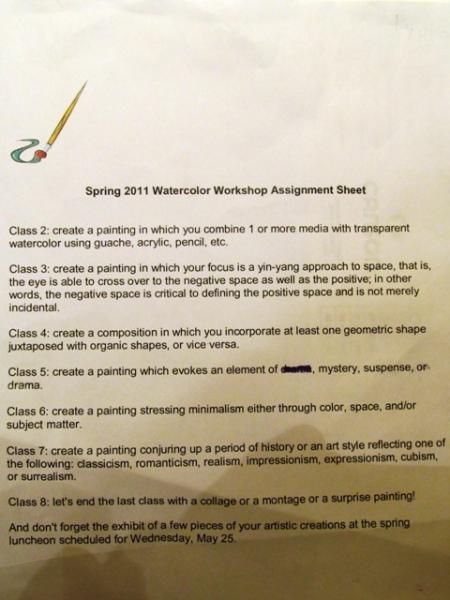 Art Workshop B is designed for aspiring artists who wish to learn basic watercolor techniques as well as for those who wish to advance their painting skills in water media, e.g. watercolor, guache, or acrylic. A more structured approach will be taken with the former; a more independent interaction will apply to the latter. Instruction will be through both group and individual presentations and also through critiques.