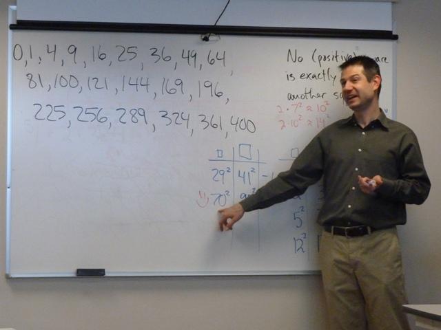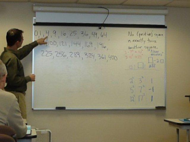 In this interactive session we will discover some of the secrets of the seemingly simple sequence of perfect squares. Recall that a square is a number such as 25 that is obtained by multiplying a whole number by itself; in this case we have 5 X 5 = 25. We will discuss Pythagorean triples, find recursions, and even look at Fermat’s Last Theorem.