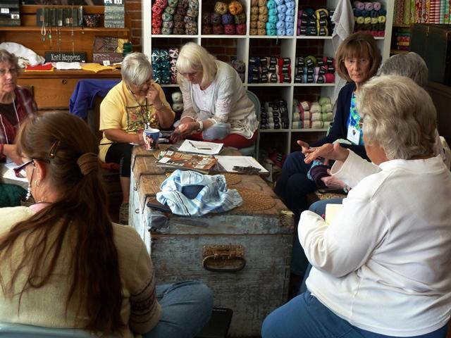 NOTES: 1) Park on Main St. or in the lot behind the store (back entrance has a handicap ramp, if needed); 2) You are welcome to stay longer at each session to meet your knitting needs.