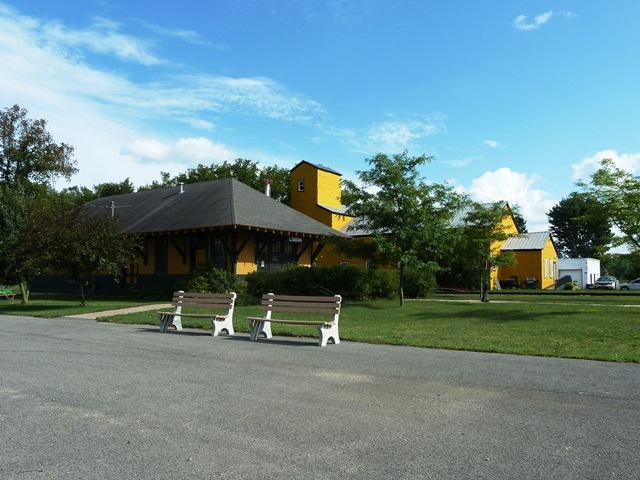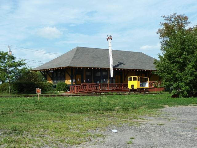 DESCRIPTION: Lisbon Depot Museum is a large gold building by the railroad tracks in Lisbon.