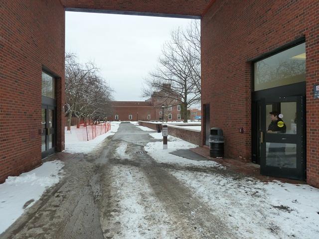 ACCESSIBILITY: Automatic handicap outside doors. There is an elevator at the opposite end of the corridor (in the alcove of the foyer which leads to Merritt Hall). Once in the basement, retrace your steps to the end closest to parking lot #2 where you will find the lower entrance to the classroom 106.