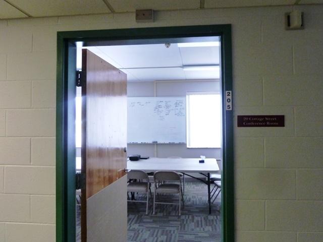 DESCRIPTION / DIRECTIONS: 20 Cottage St. Conference Room 205. This two-storey (+ basement) buidling sits on a small rise of ground to the left of the hospital, if you are entering from Cottage St. (to the right, if you are entering from Grove St.) The building used to be a nursing home. The rooms were converted to offices, so each office has its own sink and restroom, as does the Conference Room on the second floor in room 205. Enter the building from either end. Once inside, take the elevator (near the Cottage St. entrance) or the stairs at either end of the building. Conference Room 205 faces the hospital parking lot, 3 doors down from the Grove St. end of the building.